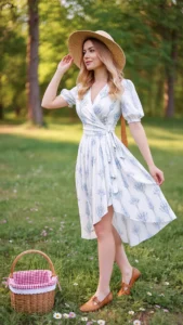 6. Wrap Dress in Soft Pastel or Floral Print